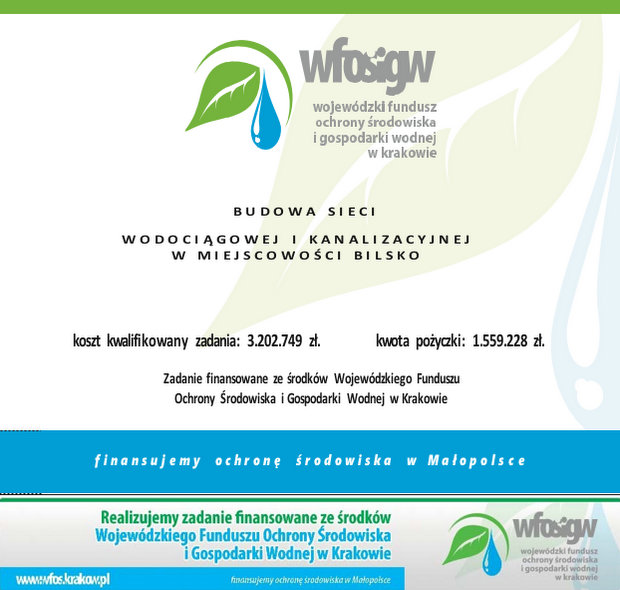W dniu 28 maja 2019 r. Gmina Łososina Dolna reprezentowana przez Wójta Gminy Pana Andrzeja Romanka przy kontrasygnacie Pani Skarbnik Marii Koseckiej podpisała umowę z Wojewódzkim Funduszem Ochrony Środowiska i Gospodarki Wodnej w Krakowie w sprawie udzielenia pożyczki na realizację zadania pn.: „Budowa sieci wodociągowej i kanalizacyjnej w miejscowości Bilsko”.