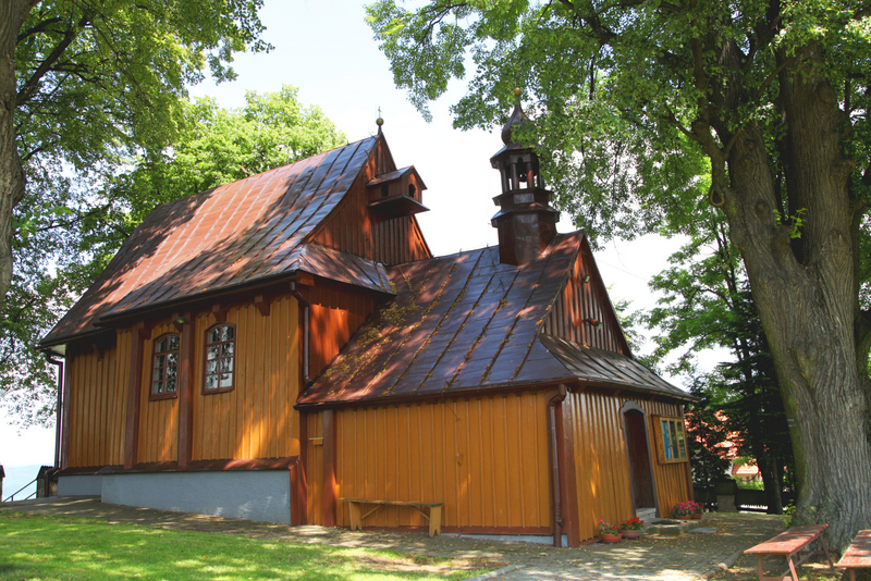 Przy drodze krajowej z Nowego Sącza do Brzeska i Krakowa, na historycznym szlaku wiodącym niegdyś z Węgier do Polski, w paśmie wzgórz ścielących się między Tęgoborzem a Łososiną Dolną, znajduje się Przełęcz św. Justa (ok. 450 m n.p.m.). Dojeżdżamy tu i naszym oczom ukazuje się błyszcząca tafla Jeziora Rożnowskiego, ku któremu wije się serpentynami droga. Jeżeli jednak tuż przed najwyższym punktem przełęczy odbijemy w prawo (jadąc od strony Krakowa), znajdziemy się w niezwykłym miejscu. W otoczeniu starych lip stoi tutaj niewielki drewniany kościółek z XVII w. należący do parafii Tęgoborze. I być może wyda się to niemożliwe, ale w jego cieniu zapominamy o znajdującej się na wyciągnięcie ręki ruchliwej krajówce. Czujemy spokój i obecność duchów przeszłości.